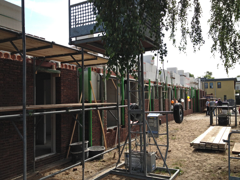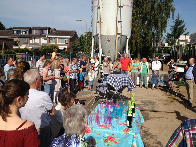 Buurtbewoners, ouders en andere betrokken waren in grote getale gekomen om er een bijzonder moment van te maken. De ochtend begon met enkele toespraken van betrokken partijen maar het echte moment was natuurlijk het aanbrengen van een plaquette met daarop het bouwjaar van het gebouw. Die taak was weggelegd voor twee toekomstige bewoners die op zeer vakkundige wijze de plaat natuursteen nabij de entree van het gebouw monteerden.
